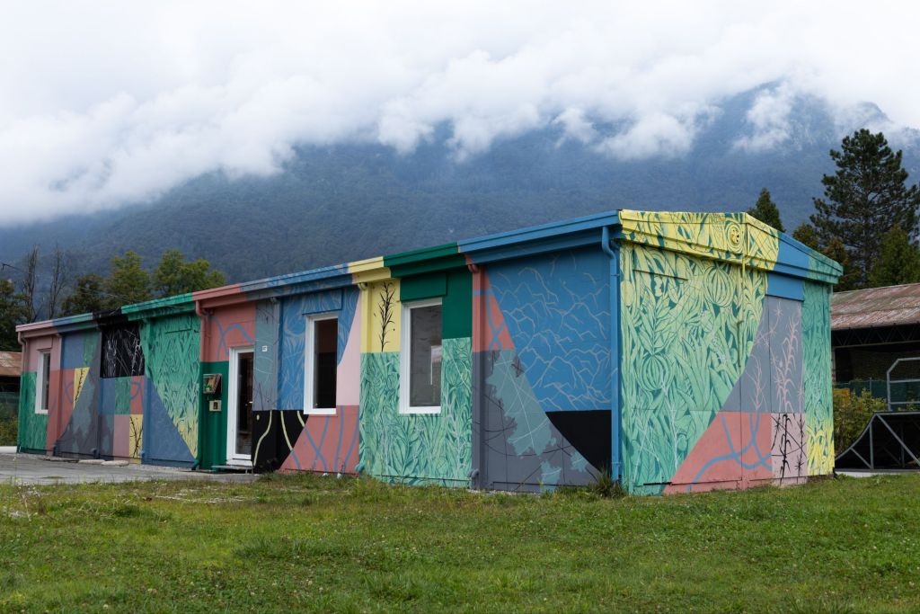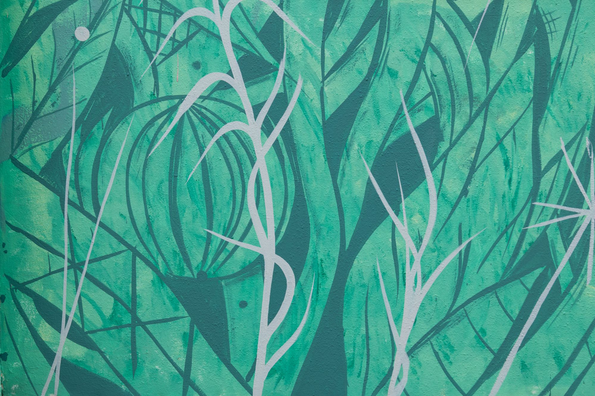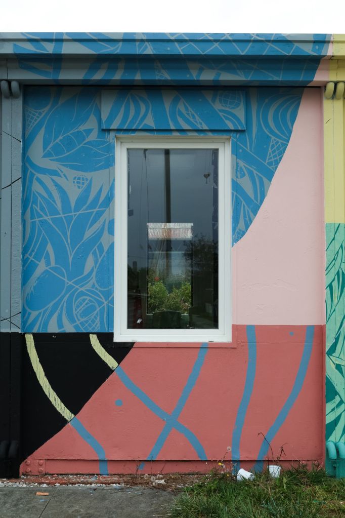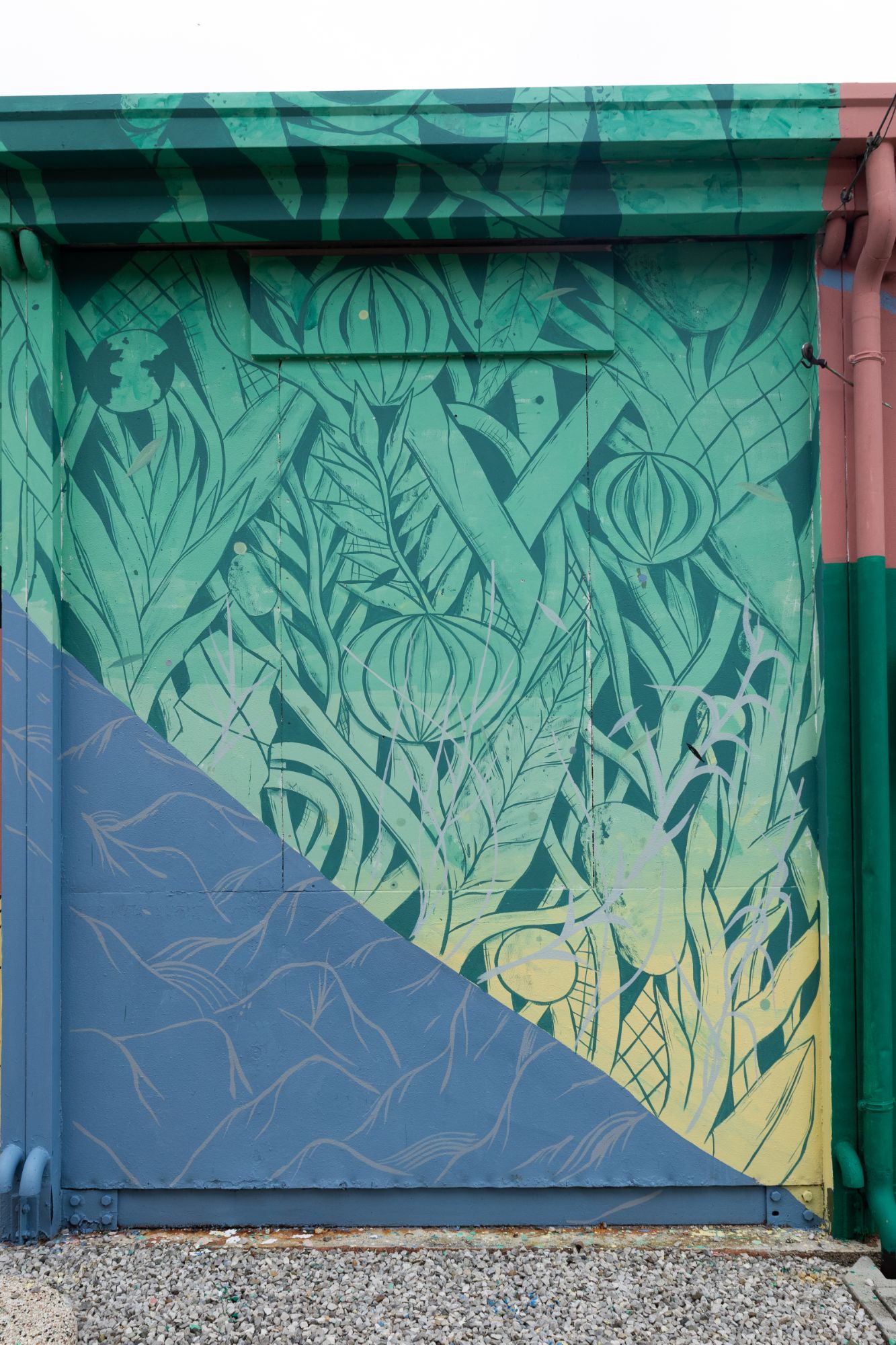 L’intervento si sviluppa come una tessitura visiva che cerca una connessione con le montagne e il Paesaggio delle dolomiti , evocandone ritmi, stratificazioni e andamenti naturali. Le forme dialogano con l’architettura del luogo e con le rampe da skate presenti sul retro dell’edificio, assumendone curve, tensioni e dinamiche di movimento.
