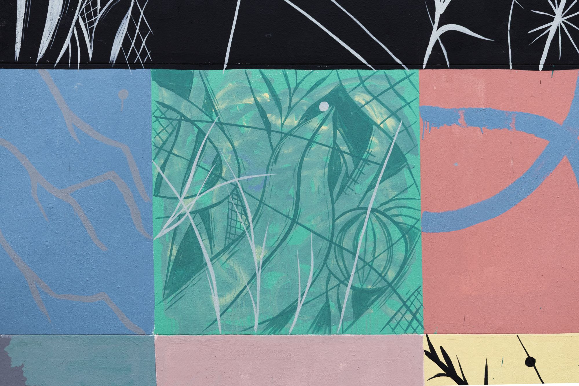 ORDITI RITMICI nasce all’interno di ‘CLOROFILLA festival arti pubbliche condivise’ che a Belluno attiva un dialogo diretto tra pratiche artistiche, spazio urbano e comunità. Il murale è stato realizzato presso lo SPAZIO EX- , luogo aperto e partecipato, in cui l’arte diventa strumento di relazione e trasformazione del territorio.