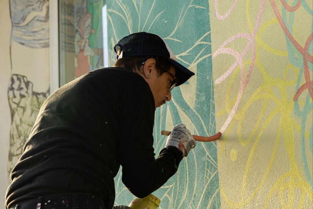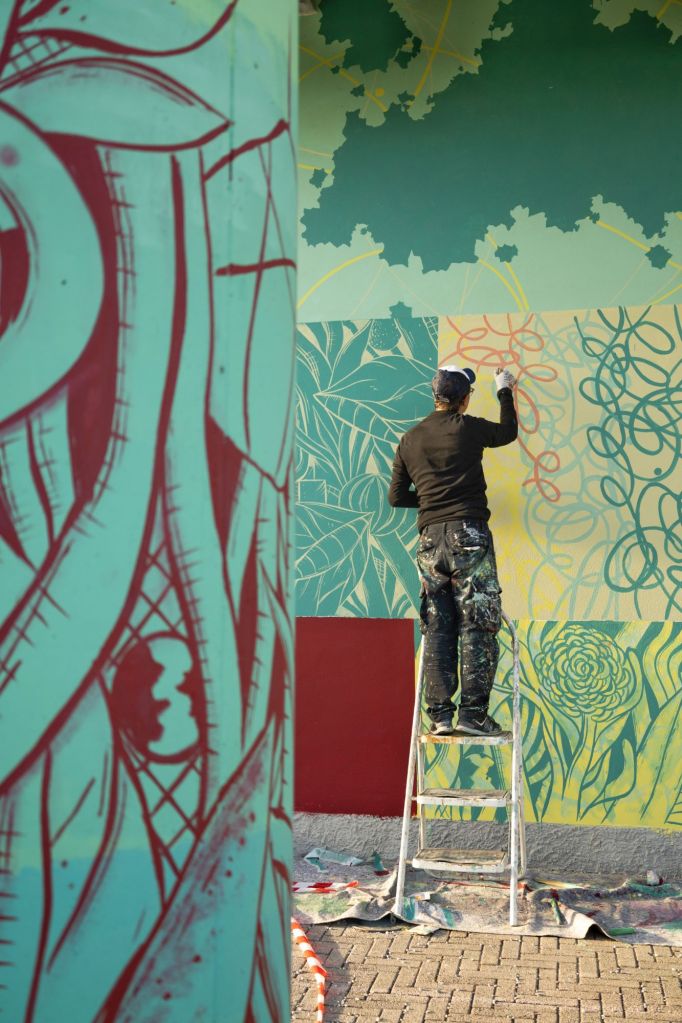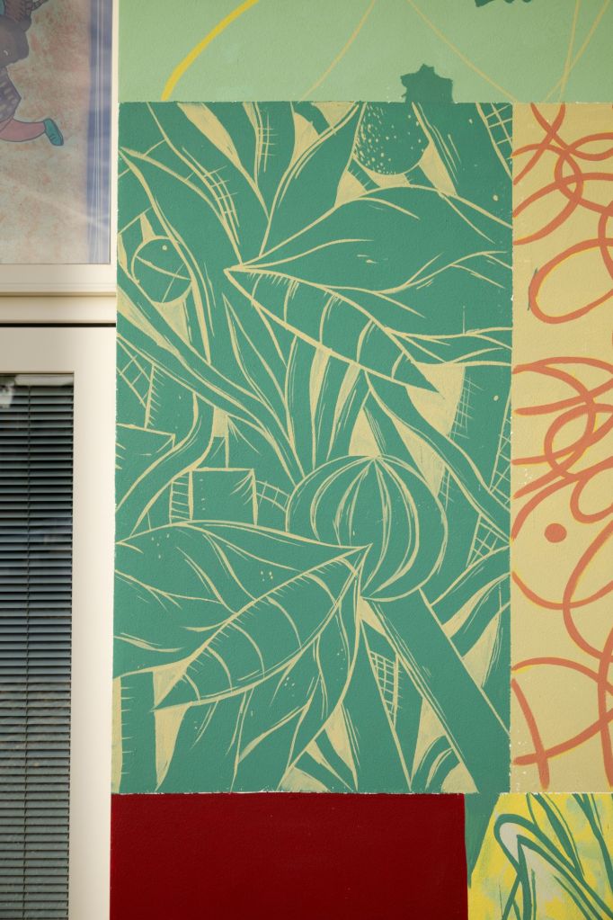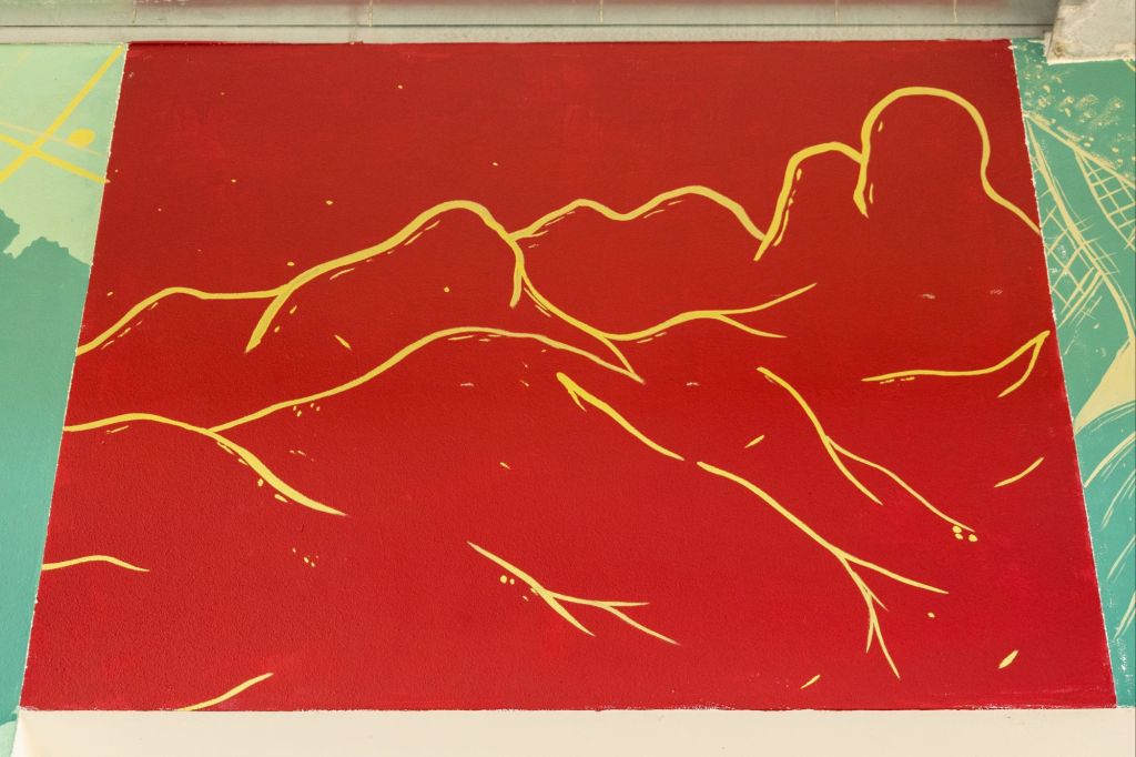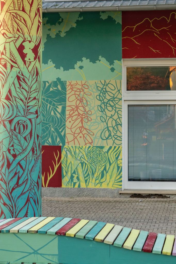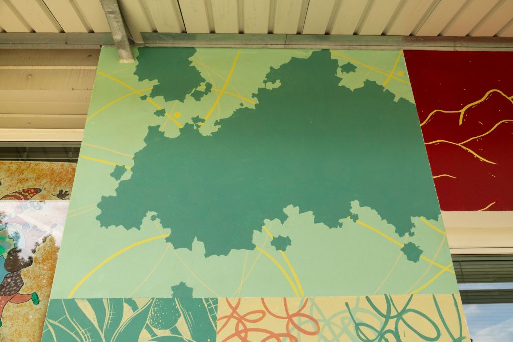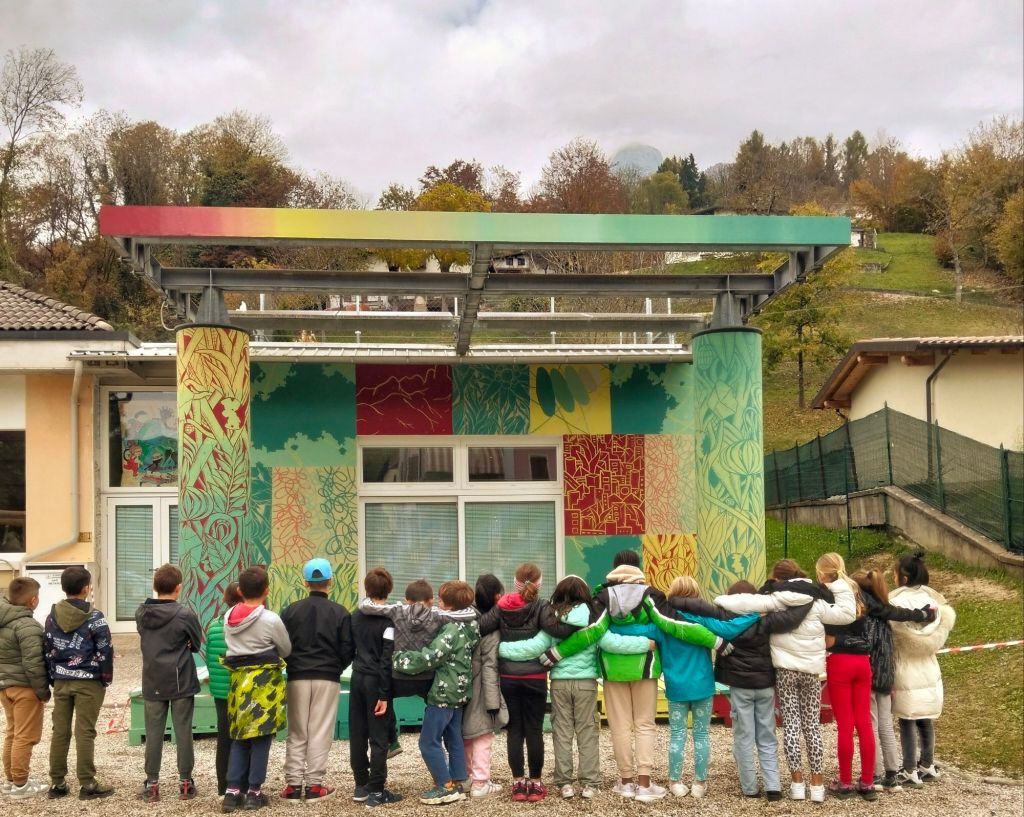 Un murale nato in ascolto del paesaggio delle Dolomiti Bellunesi realizzato a San Gregorio Nelle Alpi nella Scuola Loris Giazzon.