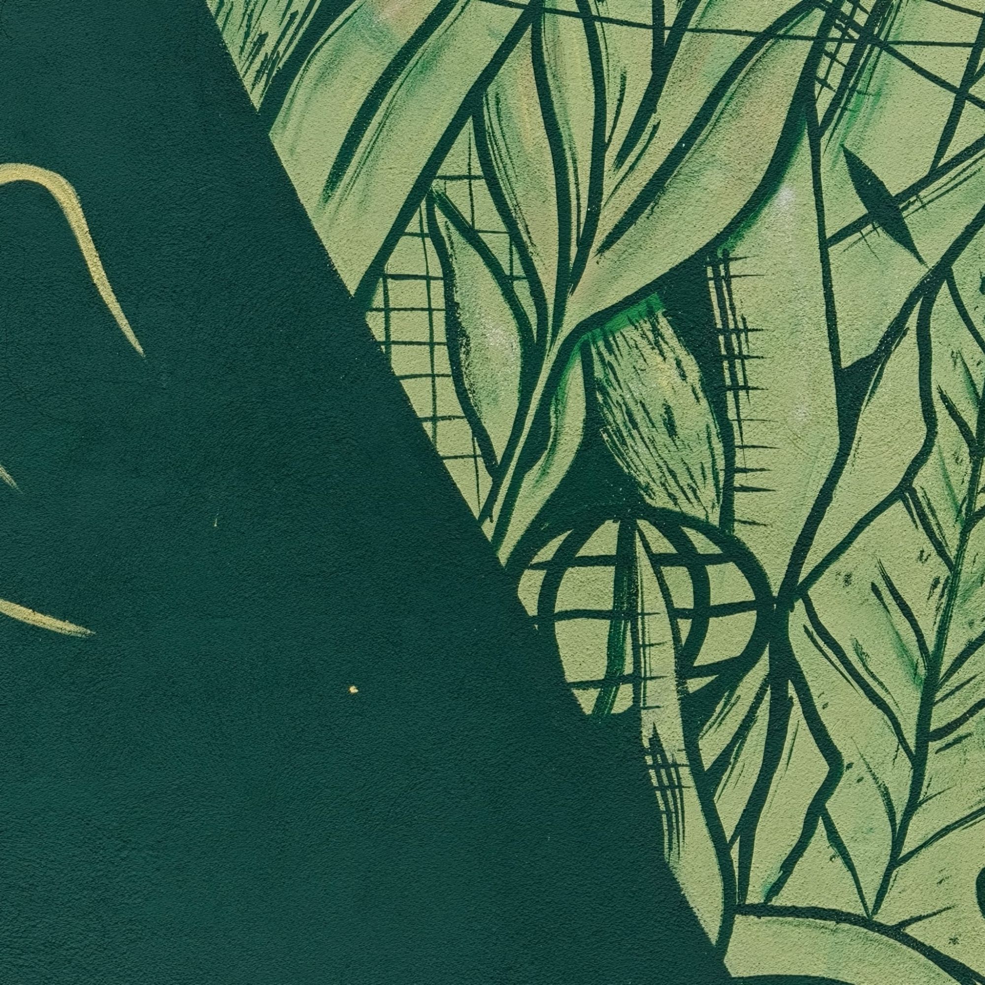 L’opera si chiama RIFIORIRE/FRAMMENTI VIVI, una composizione minimale ispirata al luogo che la ospita e al territorio. I simboli nella composizione — montagne stilizzate, linee di connessione, frammenti di colore giallo, verde e rosso — raccontano la storia e la rinascita dello spazio.